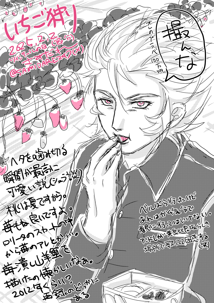 シュラがひたすらヘタを斬らされるかなぁと最初考えましたが、いやここは自分でバクバク食べてほしいなと。それが可愛いなと、シュラの気持ちになって考えた結論(・ゝ・)キリリ